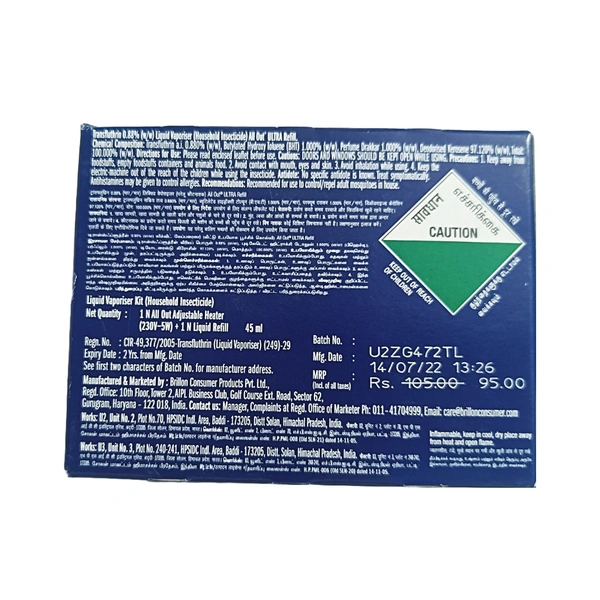 Ideal for homes of all sizes, All Out Ultra is the perfect solution for those who prioritize health, comfort, and convenience. Its compact design seamlessly fits into any space, while its advanced formula efficiently clears the air of harmful mosquitoes.