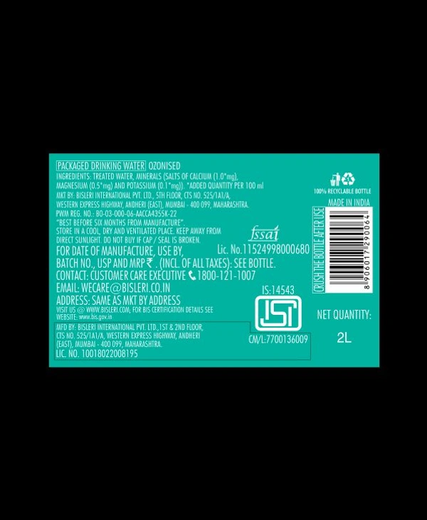 - Health Benefits: Packed with essential minerals, Bisleri water keeps you refreshed and supports your well-being.