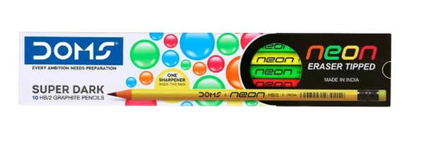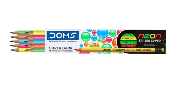 Looking for high-quality pencils that are perfect for writing, sketching, and drawing? The Neon R/T New HB/2 Point Graphite Round Black Pencil by Doms is a must-have for students, artists, and professionals alike. With its sleek design and exceptional performance, this pack of 10 pencils comes with a bonus free sharpener to keep your creativity flowing effortlessly!