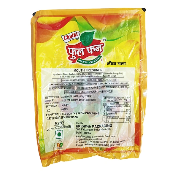 Looking for a delightful way to refresh your breath and uplift your mood? The Full Fun Mouth Freshener is the perfect choice! Packed in a convenient bundle of 58 sachets, each priced at just ₹1, this product is a must-have for anyone who loves a burst of flavor and freshness on the go.