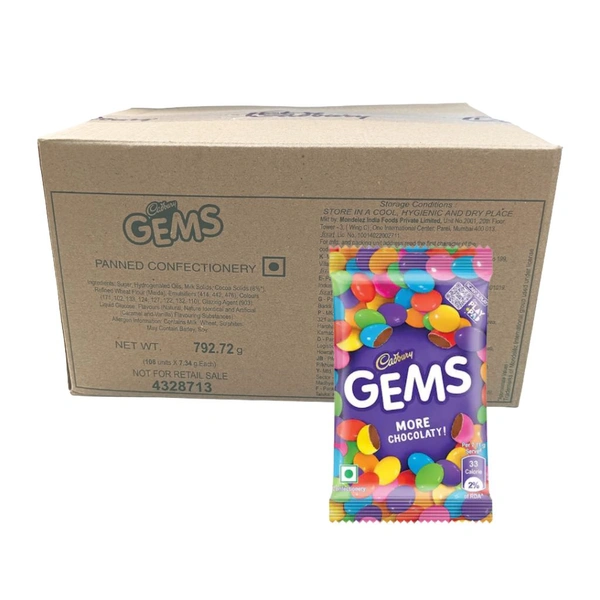 Looking to sweeten your day or stock up on a crowd-pleasing treat? The Gems - ₹5 (Pack of 108) by Ca is the perfect choice! This bulk pack is full of vibrant, colorful, and irresistibly delicious Gems that are loved by kids and adults alike. Whether you're planning a party, running a business, or just want to indulge in a sweet snack, this pack offers unbeatable value and endless enjoyment.