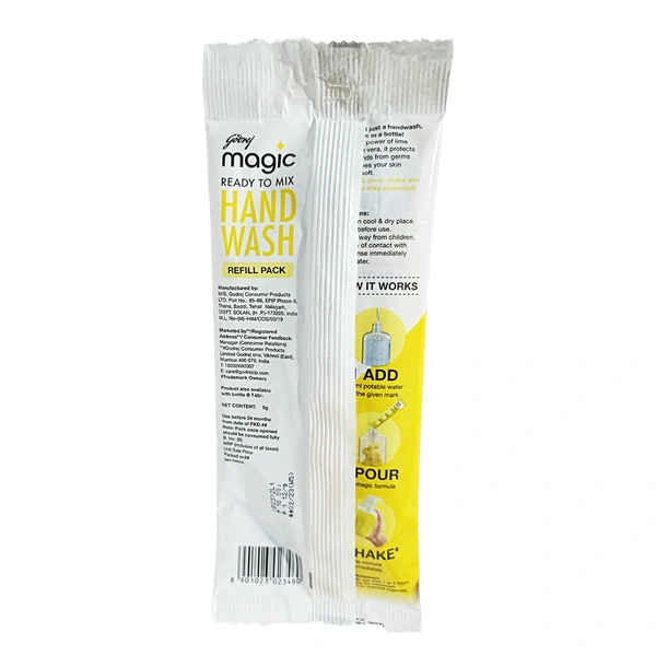 Transform your handwashing routine with the Magic Hand Wash from the trusted brand Godrej. Designed to deliver exceptional hygiene and freshness, this value pack includes 10 sachets priced at just ₹10 each, making it a cost-effective and essential addition to your daily care essentials. Perfect for families, offices, and travel, this compact solution ensures cleanliness is always within reach.