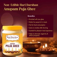 Hari Darshan is a name synonymous with trust and authenticity, and their Anupam Puja Ghee upholds this legacy. Made with precision and devotion, it ensures your rituals are infused with the finest ingredients to honor and invoke divine blessings.