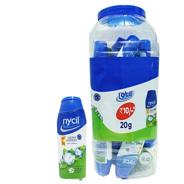 Stay fresh, confident, and protected all day with Nycil Germ Expert Cool Herbal Talc. Specially formulated to fight germs while keeping your skin cool and refreshed, this talcum powder is a must-have for anyone seeking relief from sweat and irritation. Perfectly portioned in individual ₹10 packs, this bundle of 25 units is ideal for personal use, travel, or even resale.