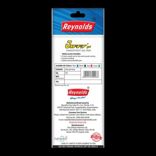Upgrade your writing experience with the Reynolds Gel Pen Jiffy Gel Blue, designed to deliver smooth, consistent, and hassle-free writing. Whether you’re jotting down notes, signing important documents, or unleashing your creativity, this pack of 5 gel pens is the perfect companion for your daily tasks. Exclusively available at Nanda Wholesale Mart, these pens combine style, reliability, and practicality in every stroke.