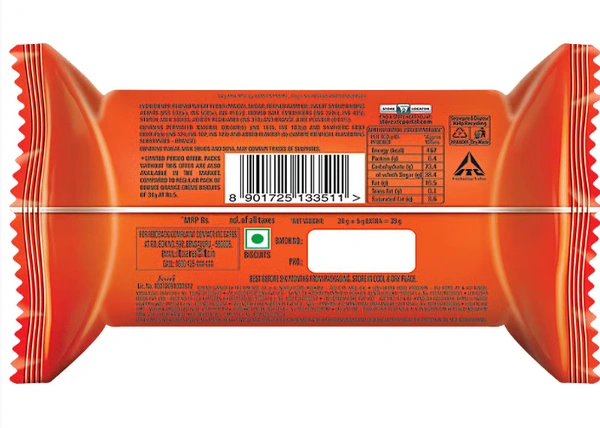 Indulge in the zesty goodness of Sunfeast Bounce Biscuits - Orange Creme Cookies, a delightful treat that brings together the perfect harmony of crunchy biscuits and tangy orange crème filling. Whether you're looking for a quick snack, a sweet addition to your tea time, or a fun treat for kids, these cookies are guaranteed to brighten your day with every bite!