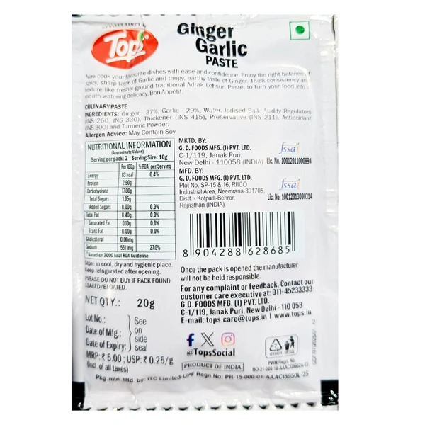 Tops Ginger Garlic Paste - ₹5 (Pack Of 45)