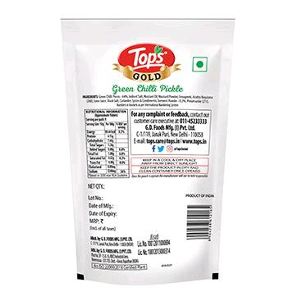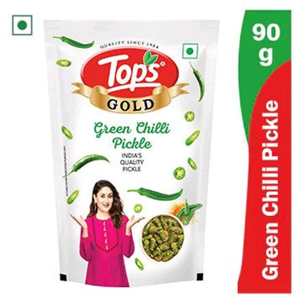 TOPS Gold Green Chilli Pickle - 90g Pouch: A Burst of Bold Flavors!