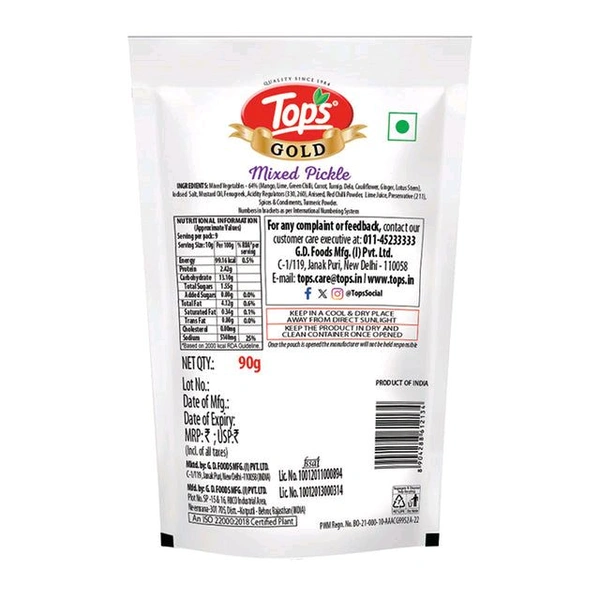 TOPS Gold Mixed Pickle - 90g Pouch: A Burst of Flavors in Every Bite!