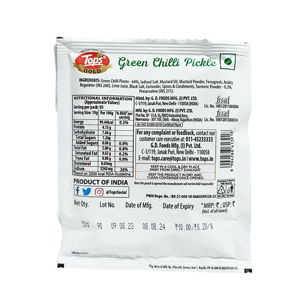 Get your Tops Green Chilli Pickle today for just ₹10 at