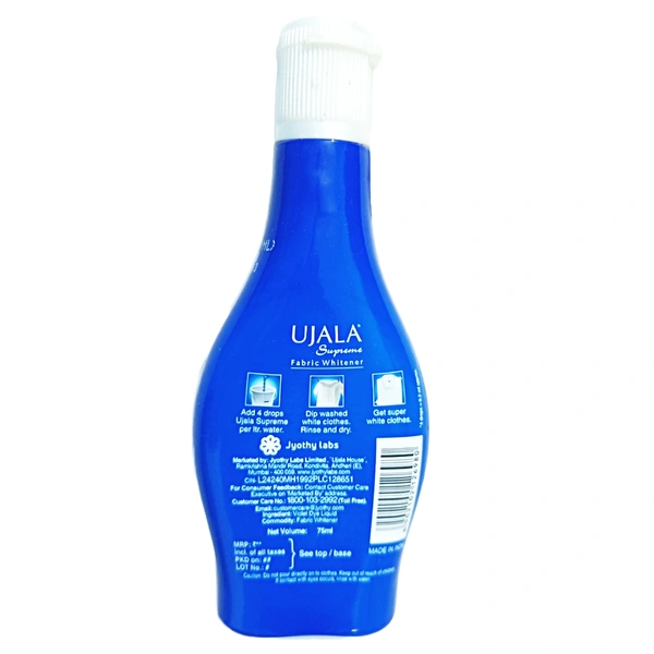 Transform your laundry routine with Ujala Supreme - 75ml, the secret to dazzling white clothes without the hassle. Perfect for anyone looking to make their whites shine brighter, this trusted product has been a household favorite for years. Whether it’s your favorite shirt, school uniforms, or cherished linens, Ujala Supreme delivers impeccable brightness with unmatched ease.