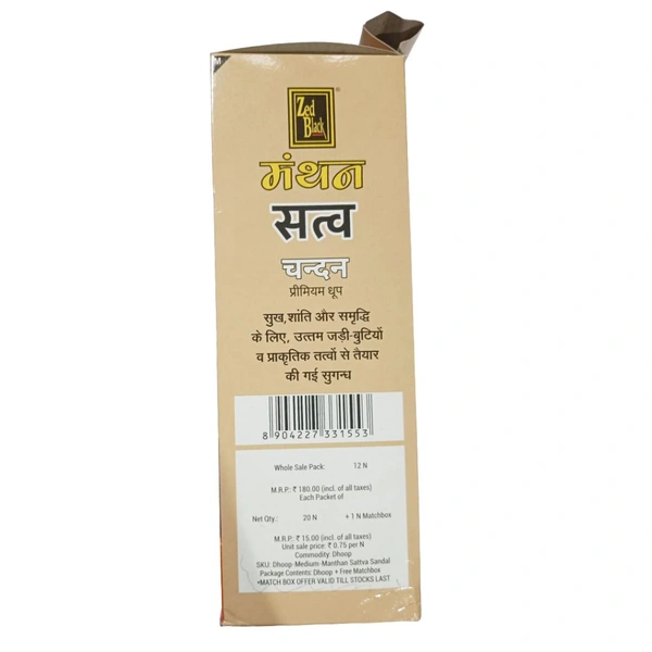 Zed Black Manthan Sattava Sandal Dhoop MRP- ₹15 (Pack Of 12)